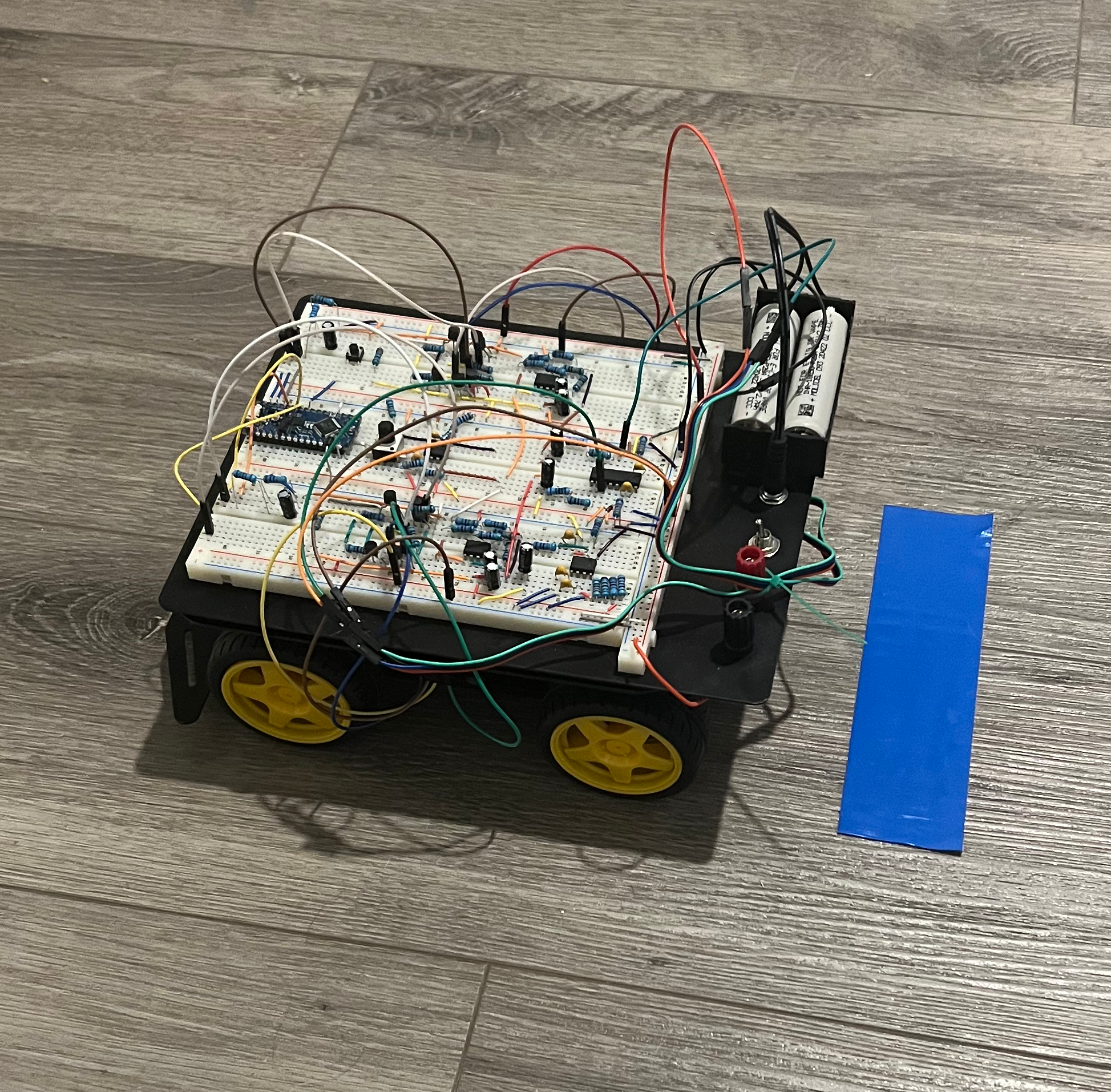 As part of group work in one of my engineering classes I worked on an Arduino powered autonomous robot. The robot has motor driver circuits and feedback loops manually implemented on a breadboard, with an ultrasonic sensor for obstacle detection. The autonomous robot was able to collect temperature, light, and humidity data, writing all collected data onto a local SD Card.